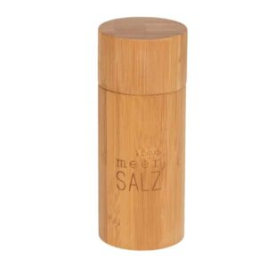 Die Salzmühle besteht aus Bambus, das Mahlwerk allerdings aus Keramik. Sie ist 15 cm hoch und hat einen Durchmesser von 6 cm.