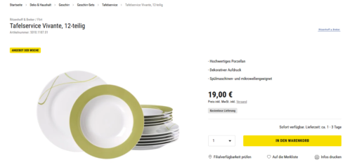 Tafelservice Vivante, 12-teilig für 19,00 Euro inkl.Versand.