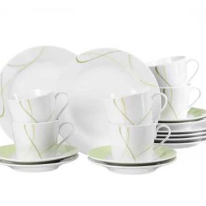 18-teiliges Kaffeeservice der Serie Vivante aus hochwertigem Porzellan in grün/weiß, spülmaschinengeeignet.