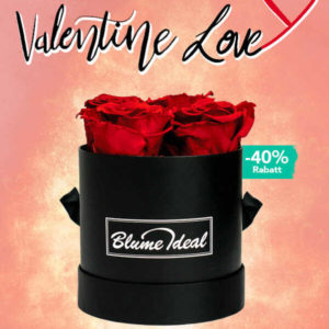 Bei BlumeIdeal bekommt Ihr aktuell die „Rosenbox Lovely Valentine“ für 29,99€ statt 49,99€. Hinzu kommen 4,99€ Versandkosten.