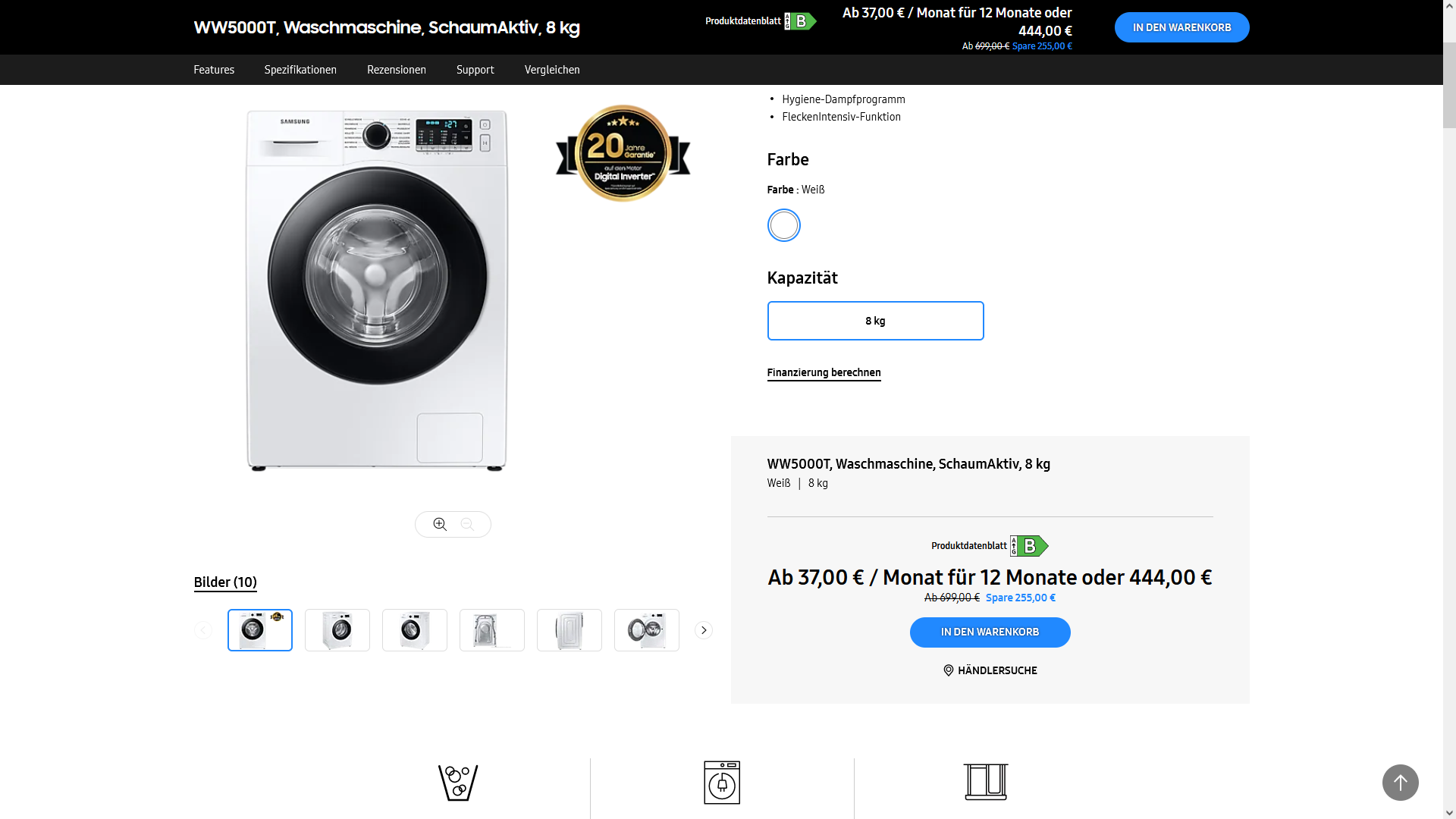 Bei Samsung selber erhaltet Ihr die Samsung Waschmaschine für 444€ (inkl Versand). Der PVG beginnt ab 594€.