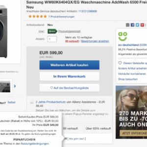 Samsung WW80K6404QX/EG Waschmaschine AddWash 6500