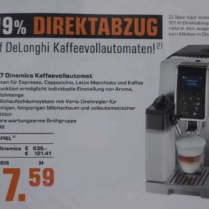 Denn dort gibt es dann 19% Direktabzug z. B. auf die De’Longhi Delonghi ECAM 352.57 Dinamics.
