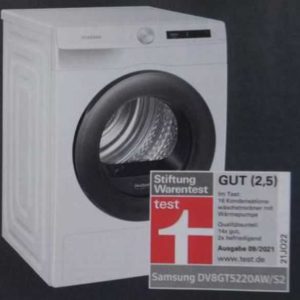 Denn dort gibt es in dieser Zeit z. B. den Samsung DV 8 GT 5220 AW/S2 Wärmepumpentrockner stark reduziert.