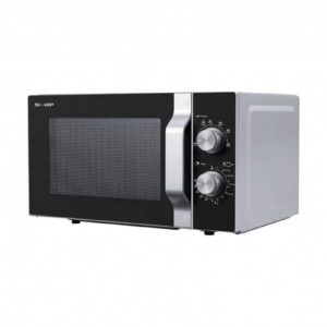 Einfache Solo-Mikrowelle mit mechanischer Bedienung zum Auftauen, Garen und Erwärmen.