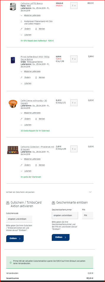 lemalix 20.04.2019, 16:07 #Mit der vergünstigsten Maschine bekommt man dazu 30 x Capseln für den Osternest, 1 x Cafissimo Collection Probierset mit 8 Kapseln und sogar der von mir ausgewählte Kaffee ist scheinbar im Angebot 🙂