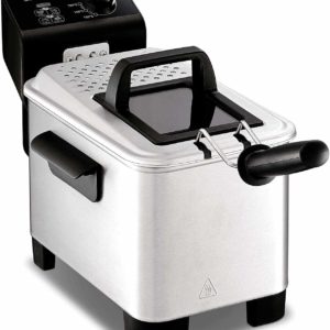 Fritteuse Easy Pro von Tefal. Die Friteuse ist ausgestattet mit einstellbarem Thermostat mit Temperaturanzeigelampe. Leicht zu reinigen dank des emaillierten Topfes. Bis auf das mechanische Bedienfeld kann alles in der Maschine gespült werden.