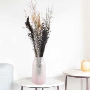 Der Trockenblumenstrauß „Black and White“ bietet mit Weizen, Flachs, und weißem und schwarzem Pampasgras einen minimalistischen und dennoch spannenden Hingucker. Die schlichte Eleganz dieses Trockenblumenstraußes eignet sich hervorragend als langlebige Dekoration für ein modernes Zuhause. Die Stiellänge beträgt ca. 65cm.
