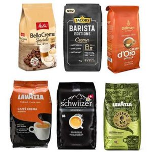 Darunter gibt es zum Beispiel Kaffeebohnen von Lavazza, Schwiizer, Schmüli, Melitta, Jacobs, Dallmayr, Seeberger