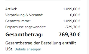 Regulär fallen sogar 1099€ an. ihr spart also 30% dank dem Gutschein.