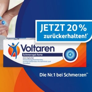 Kaufe im Zeitraum vom 15.01.2024 bis zum 29.02.2024 eine Voltaren Schmerzgel forte 30g-, 100g-, 150g- oder 180g-Packung bei einer Apotheke deiner Wahl. Mit dem Upload des Bons und der Daten gibt es 20% des Kaufpreises zurück, also leider nur eine teilweise Erstattung, die aber besser ist als gar keine.