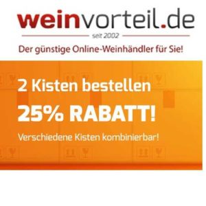 Weinvorteil.de 25% Rabatt ab 2 Kisten auf ausgesuchte Weine!