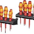 14-teiliges Schraubendreherset mit stückgeprüften isolierten Schraubendrehern gem. IEC 60900. Stückprüfung im Wasserbad bei 10.000 V für sicheres Arbeiten bei der zugelassenen Spannung von 1.000 V. Kraftform Plus Griff für angenehm ergonomisches Arbeiten, bei dem Blasen und Schwielen vermieden werden. Harte Griffzonen für hohe Arbeitsgeschwindigkeit, während weiche Griffzonen hohe Drehmomentübertragung garantieren. Teilweise Lasertip: Die Spitze krallt sich im Schraubkopf fest und verhindert das Herausrutschen. Inklusive Spannungsprüfer und 2 Racks zur Aufbewahrung. „Take it easy“ Werkzeugfinder mit Farbkennzeichnung nach Profilen und Größenstempelung – zum einfachen und schnellen Finden des benötigten Werkzeugs. Abrollschutz verhindert lästiges Wegrollen am Arbeitsplatz. Inklusive Spannungsprüfer und 2 Racks zur Aufbewahrung.
