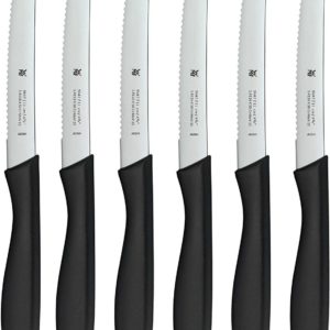WMF Classic Line Brotzeitmesser Set 6-teilig, 23 cm, Vespermesser mit Doppelwellenschliff, Spezialklingenstahl, Kunststoffgriff, schwarz