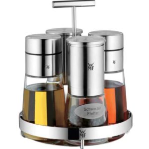 WMF De Luxe Menage-Set 5-teilig, für Salz, Pfeffer, Essig, Öl, Ständer mit 2 Essig-/ Ölspender, Salzmühle, Pfeffermühle, spülmaschinengeeignet für 79,95€ inkl. Versand.