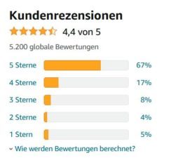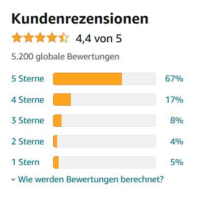 Mehrheitlich wird der Wasserkocher von den Amazon-Kunden jedoch als sehr gut erachtet: 4,4 von 5 Sternen