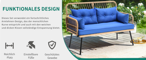 - GEMÜTLICHER SITZPLATZ: Auf der Suche nach stilvollem und komfortablem Outdoor-Freizeitvergnügen? Dieses Terrassen-Sofa erfüllt alle Anforderungen; Ausreichend Sitzplatz mit dicken Kissen ermöglicht gemütliche Zeit mit Kindern sowie kuschelige Momente mit Ihrem Haustier; Der Kissenbezug ist abnehmbar und leicht zu pflegen.