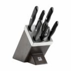 Set enthält: 1 Selbstschärfender Messerblock, 1 Vielzweckschere TWIN L, 1 Spick- und Garniermesser, 1 Fleischmesser, 1 Kochmesser, 1 Universalmesser, 1 Brotmesser
