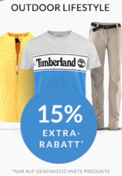 Bei Engelhorn erhaltet ihr im Rahmen des Deal of the Week 15% Extra-Rabatt auf Outdoor. Der Rabatt wird euch bei den Produkten angezeigt und automatisch abgezogen. Die Auswahl ist so groß, dass vielleicht auch etwas für euch dabei ist. ? Eventuell habt ihr Glück und die Aktion ist ab einem Bestellwert von 50 € auch noch mit dem 5 € Newsletter-Gutschein kombinierbar. Bedingungen:
