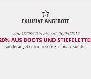 Premium-Mitglieder bekommen noch heute und morgen 20% Rabatt auf Boots und Stiefeletten.