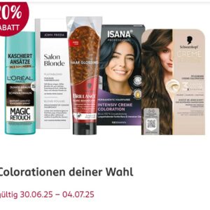 Bei Rossmann erhaltet ihr 20% Rabatt auf den Kauf von beliebig vielen Haarcolorationen.
