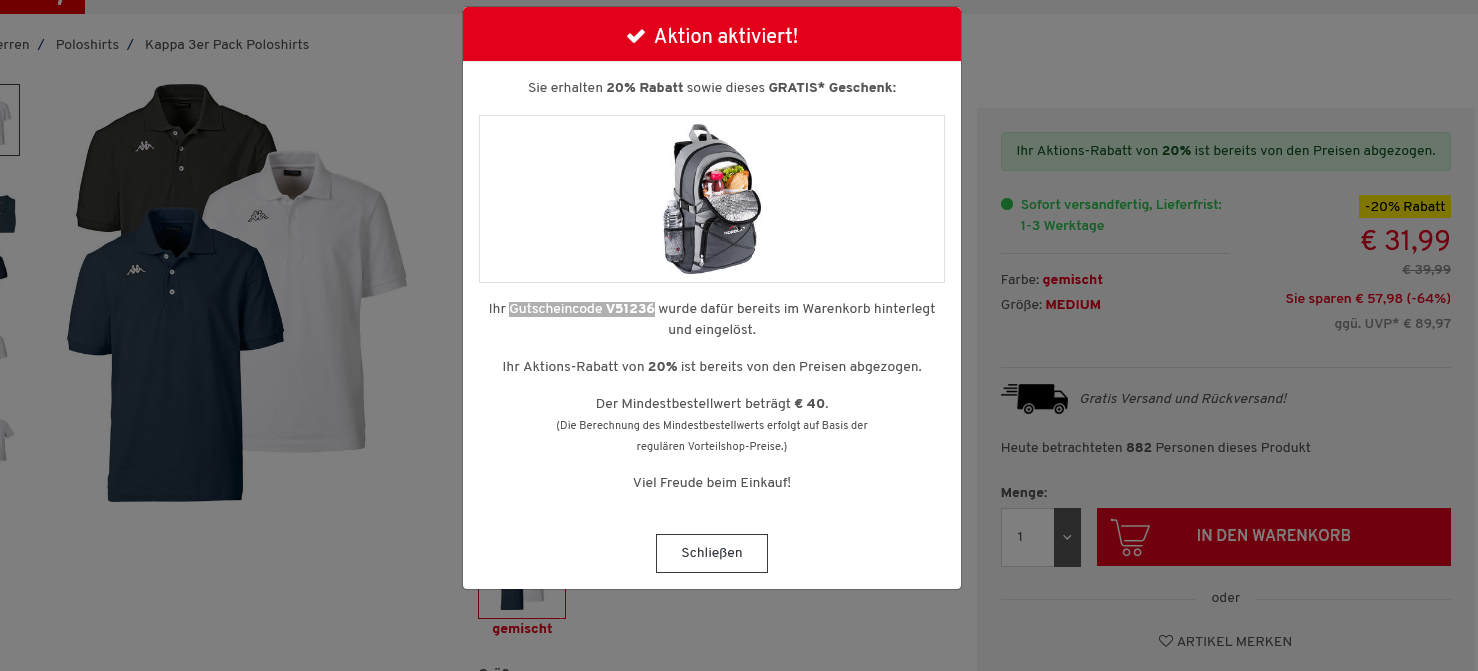 Nutzt den Gutscheincode: V51236 um die 20% Rabatt und den gratis Rucksack zu bekommen.