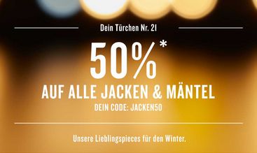 Es ist ein Adventskalenderangebot und mit dem Gutscheincode JACKEN50 gültig.