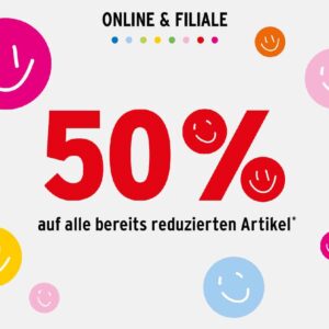 Ab heute, bis zum 04.05. gibt’s wieder 50% auf bereits reduzierte Artikel.
