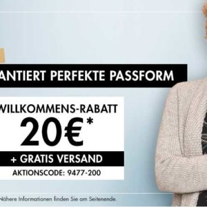 Gutschein-Bedingungen: Dieser Aktionscode ist ausschließlich für Neukunden und nur einmalig in Verbindung mit einer Online-Bestellung gültig. Der Mindesteinkaufswert beträgt 60 € nach Abzug der Retoure. Eine nachträgliche Anrechnung oder Barauszahlung sowie eine Verbindung mit anderen Gutschein- oder Geschenkaktionen ist nicht möglich. Gültig bis 30.06.2019.