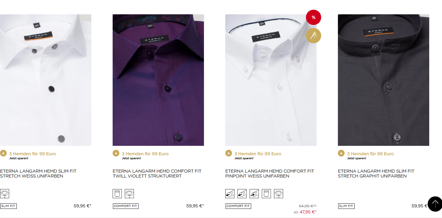 Bei Eterna 3 Aktions-Hemden für 99 Euro