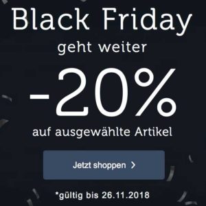 Bei bonprix erhaltet ihr ím Rhamen des Black Friday bis zum 26. November 20% Rabatt auf ausgewählte Artikel. Ein Gutscheincode ist nicht notwendig, da die Preise bereits reduziert wurden. Schaut euch einfach mal um, vielleicht ist ja etwas für euch dabei. ?