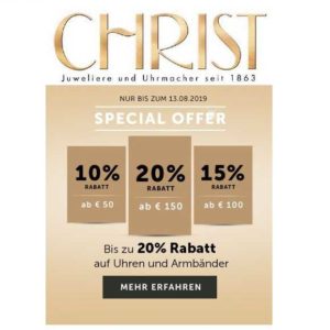 Bis zum 17.09.2019 bekommt Ihr bei Christ Staffelrabatte auf Euren Einkauf: