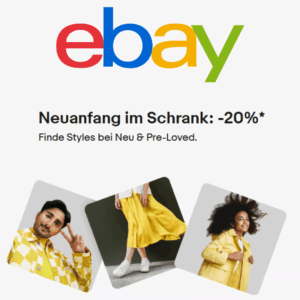 Bei ebay bekommt einen 20%-Gutschein für Kleidung, Accessoires, Uhren Schmuck & Beauty.