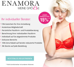15% Rabatt bei Anmeldung am "Enamora Meine GröSSe" (Club mit vielen weiteren Vorteile, siehe Screenshot)