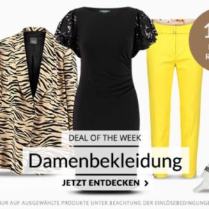 Bei Engelhorn erhaltet ihr im Rahmen des Deal of the Week bis zum 13.07.2019 um 3 Uhr morgens 15% Extra-Rabatt auf Damenbekleidung. Der Rabatt wird euch bei den Produkten angezeigt und automatisch abgezogen. In der Kategorie stehen euch tausende Artikel zur Auswahl. Eventuell ist ja etwas für euch dabei ?