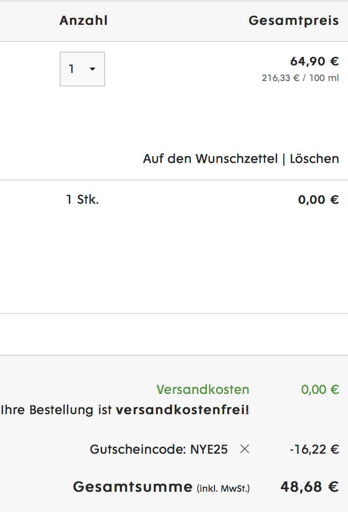 Bei Flaconi erhaltet ihr nur heute 25% Rabatt auf alle nicht reduzierten Produkte. Nutzt dazu einfach den Gutscheincode NYE25.