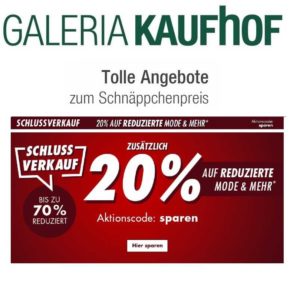 Galeria Kaufhof: 20% Extra-Rabatt im Mode-Sale!
