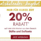 Im Online-Shop von Galeria-Kaufhof verstecken sich hinter dem 12. Türchen im Adventskalender 20% Rabatt auf viele tolle Marken aus dem Bereich Düfte und Duftsets. Ein Gutscheincode wird nicht benötigt, die Preise wurden bereits reduziert.