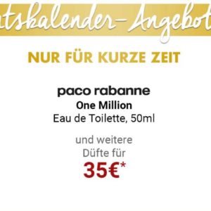 Im Online-Shop von Galeria-Kaufhof verstecken sich hinter dem 22. Türchen im Adventskalender verschiedene Düfte zu je 35€. Ein Gutscheincode wird nicht benötigt, die Preise wurden bereits reduziert. Wie immer: Preisvergleich nicht vergessen. Bedenkt auch die Versandkosten.