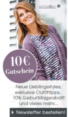 Alternativ zum 20% Gutschein: Ihr könnt Euch für den Newsletter anmelden und einen 10€ Gutschein erhalten: Mindestumsatz 39,90 €, einmalig online einlösbar, keine Barauszahlung, 3 Monate gültig, nicht kombinierbar.