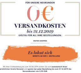 Gültig bis 05.05.2019 für das gesamte heine Sortiment, ausgenommen Multimedia/Unterhaltungselektronik, Versand- & Speditionskosten sowie für den Erwerb des Shoppingvorteils „versandkostenfrei bestellen“. Mindestbestellwert 59 €. Pro Haushalt kann nur ein Code eingelöst werden und ist nicht mit anderen Aktionen/Gutscheinen/Bonus kombinierbar. Versandkostenbefreiung gilt nur für Porto- und Verpackungspauschale. Kostenpflichtige Zusatzservices, wie z.B. Speditionslieferungen sind von der Aktion ausgenommen.