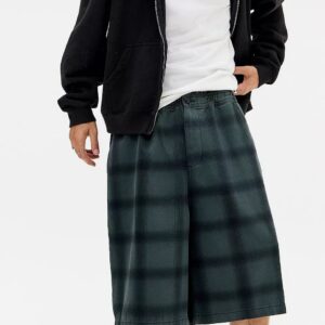 Diese Shorts fühlen sich an wie ein warmer Sommertag in der Stadt – unkompliziert, leicht und genau richtig für alles, was spontan passiert.Das grüne Karomuster bringt sofort Leben in den Look, ohne zu laut zu wirken. Es hat etwas Verspieltes, aber gleichzeitig auch eine gewisse Coolness – typisch Streetwear, die nicht bemüht wirkt, sondern einfach da ist.Gefertigt aus leichter Baumwollpopeline tragen sich die Shorts besonders angenehm. Der Stoff ist atmungsaktiv und weich, perfekt für warme Tage, an denen man sich frei bewegen möchte. Gleichzeitig sorgt der lockere, leicht baggy Fit dafür, dass sie entspannt fallen und nie einengen. Praktische Details wie mehrere Taschen und die längere Schnittform machen sie alltagstauglich – egal ob unterwegs in der Stadt, im Urlaub oder einfach draußen mit Freunden. Was diese Shorts besonders macht, ist dieses Gefühl von müheloser Lässigkeit. Sie sehen nicht so aus, als hätte man lange über das Outfit nachgedacht – und genau das macht den Look am Ende aus.Ein Teil, das man einfach anzieht – und sofort passt alles