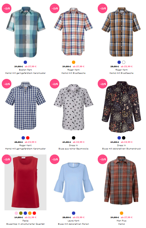 Bei Klingel bekommt Ihr zur Zeit 20% auf ausgewählte Blusen und Hemden.
