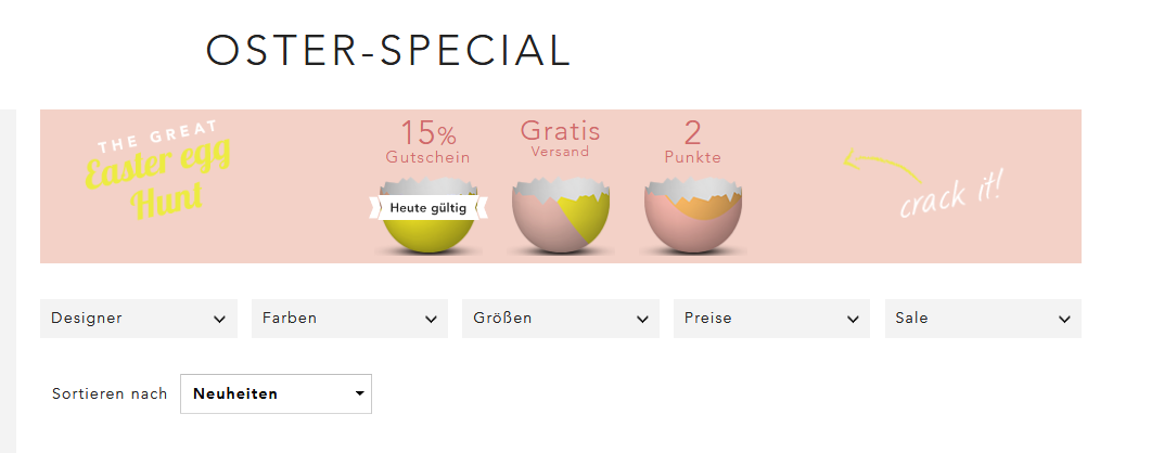 Bei der Best Secret Eiersuche habt ihr die Möglichkeit, heute wieder EXTRA 15% + zusätzlich kostenlosen Versand bei Ostereier aufschlagen!