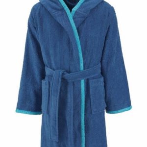Kinderbademantel „Timo“ der Marke My Home mit Kapuze und Bindegürtel. Optisches Highlight ist hier der farblich abgesetzte Saum. Mit aufgesetzen Taschen. Weiche Qualität mit guter Feuchtigkeitsaufnahme aus 100% Baumwolle (unterstützt Cotton made in Africa).