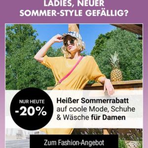 Das Samstagsangebot mit 20% Rabatt auf Mode vieler Marken für Damen inkl. Schuhe und Wäsche.