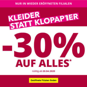 [Offline] Takko – 30% auf ALLES bei Wiedereröffnung einiger Filialen