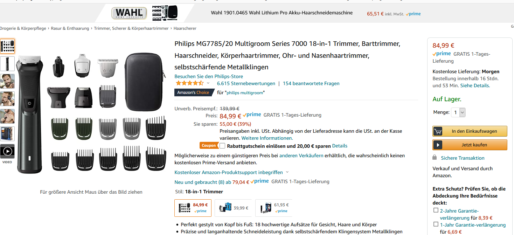 Philips MG7785/20 Multigroom Series 7000 18-in-1 Trimmer, Barttrimmer, Haarschneider, Körperhaartrimmer, Ohr- und Nasenhaartrimmer, selbstschärfende Metallklingen bei Amazon