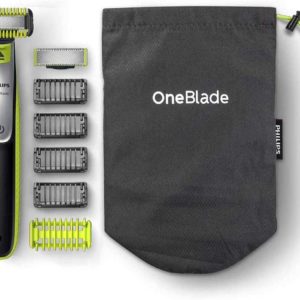 - Lieferumfang: OneBlade Handstück, 2 Klingen, 4 Trimmaufsätze für das Gesicht, 1 Trimmaufsatz für den Körper, 1 Haut Schutz Aufsatz, Reisebeutel