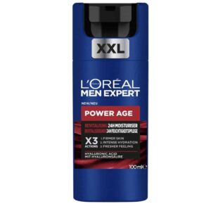 - Lieferumfang: 1x L’Oréal Men Expert Power Age Feuchtigkeitspflege mit Hyaluron in praktischer XXL-Vorteilsgröße, Für trockene und müde Haut, Inhalt: 100 ml